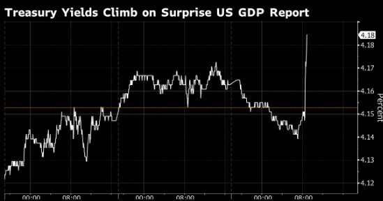 “数据显示GDP高于预期后,市场遭受剧烈冲击,”Mischler Financial Group董事总经理Tom di Galoma表示,“现货交易依然清淡,但期货卖盘却相当活跃。”